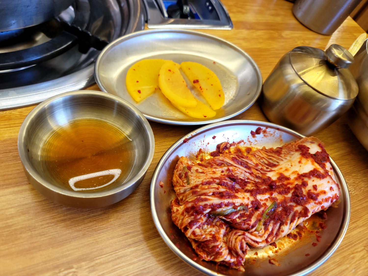 기본찬은 김치, 단무지로 특별한 것은 없는데요.
